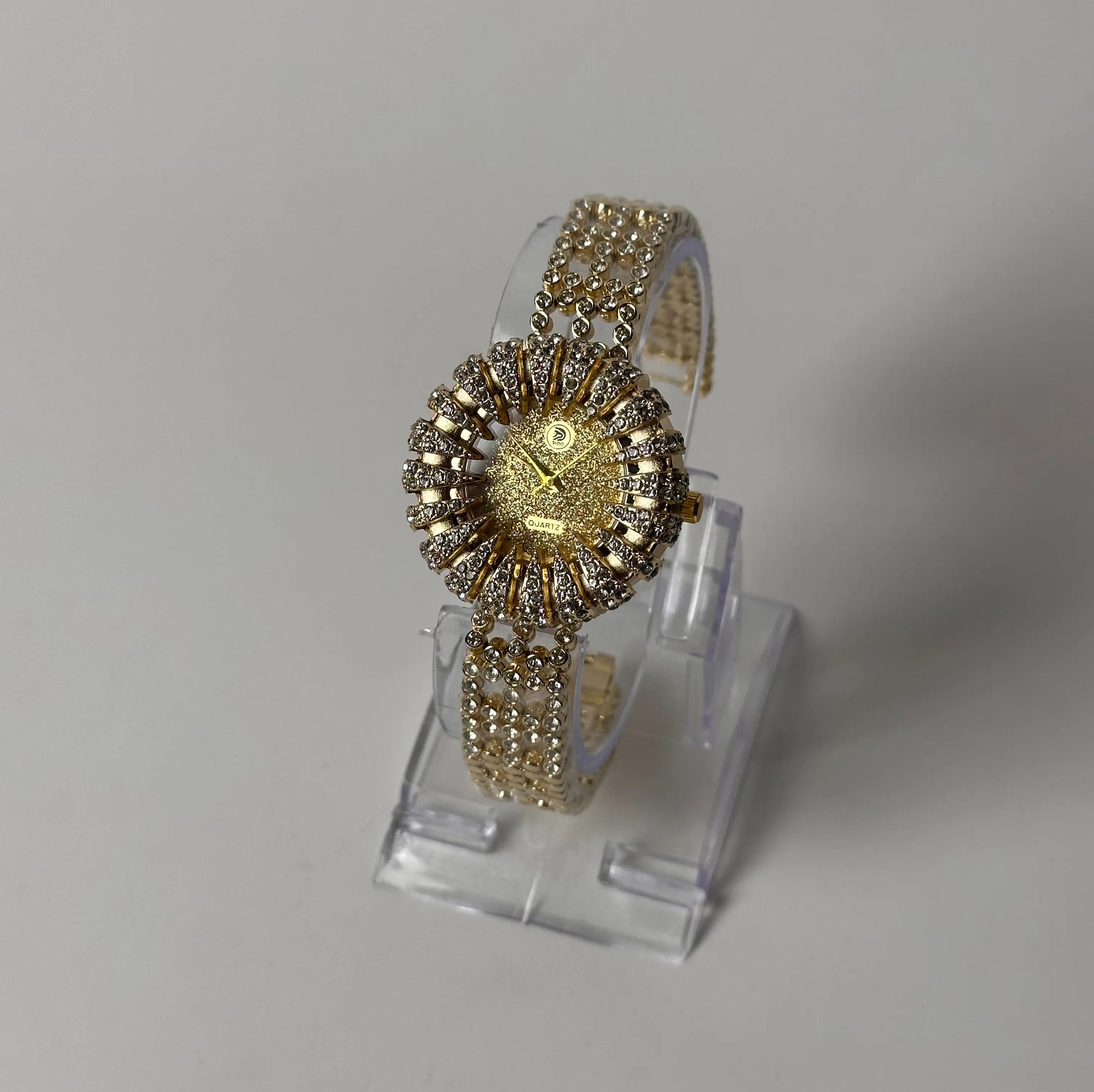 This elegant women's gold crystal watch combines timeless style with precise timekeeping, making it a perfect accessory for any occasion.